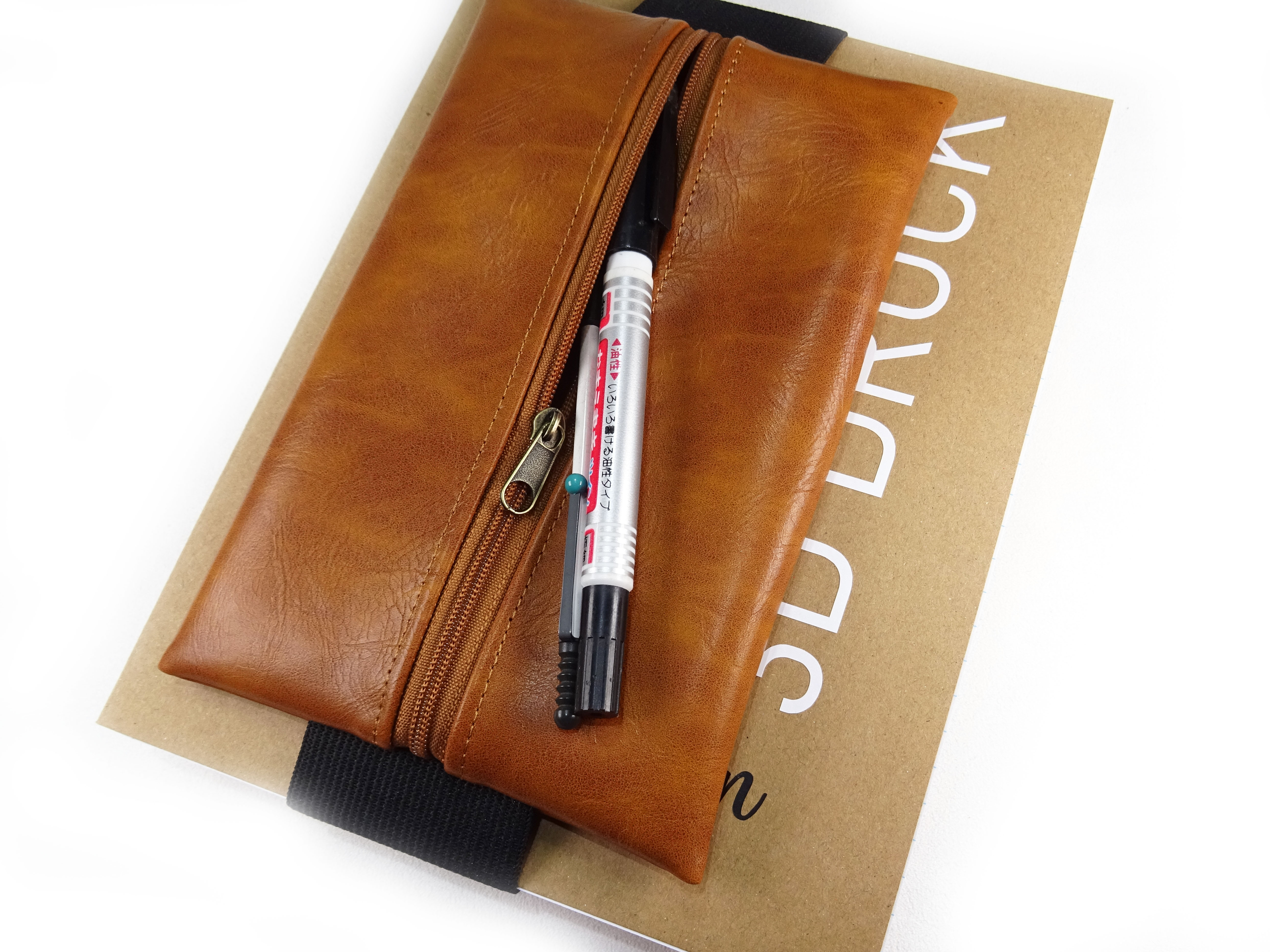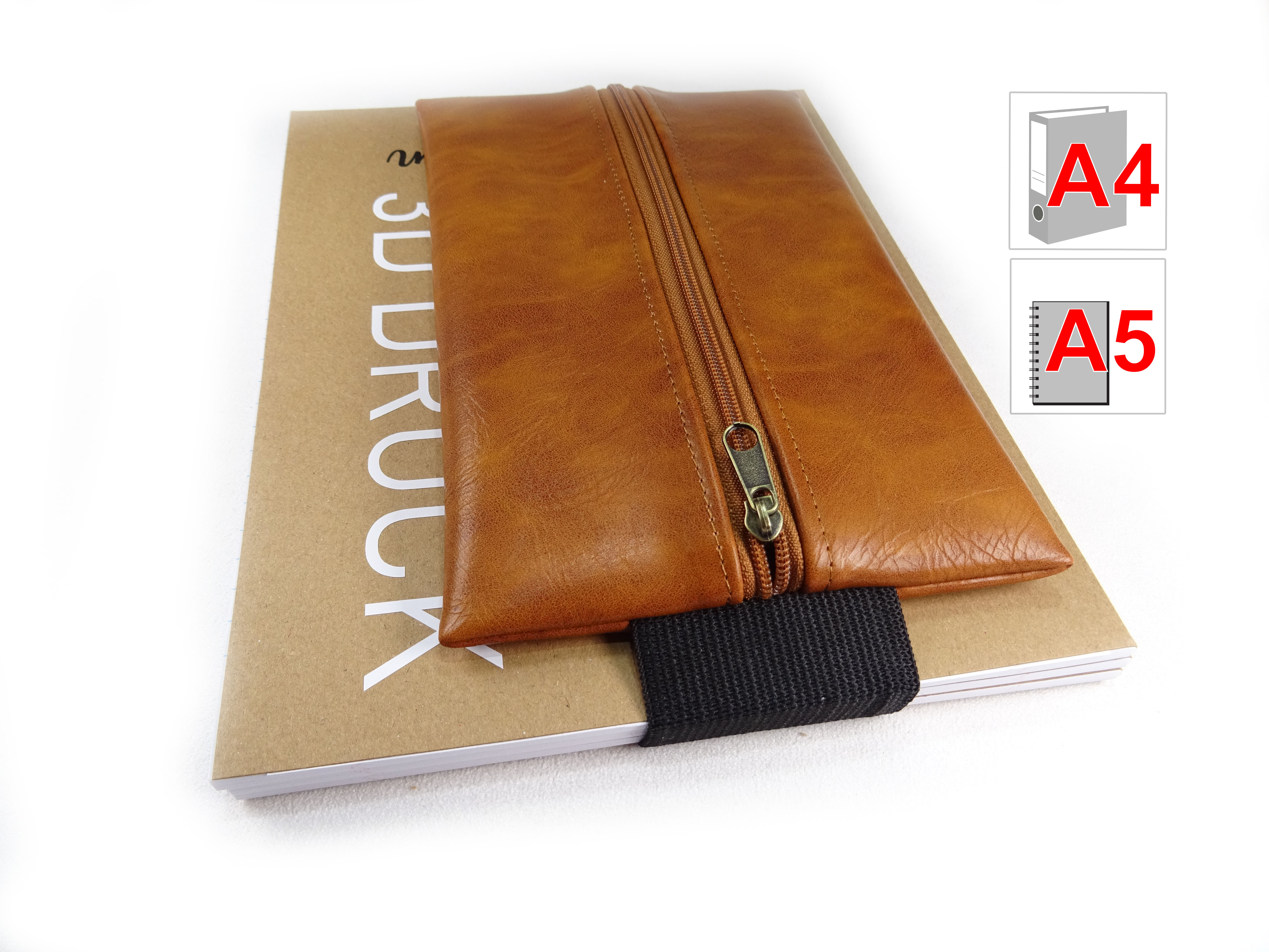 Mit dem Gummiband wird das Mäppchen um dein Notizbuch, Kalender, Ringbuch, Ordner, Tagebuch, Buch oder Skizzenbuch gespannt.