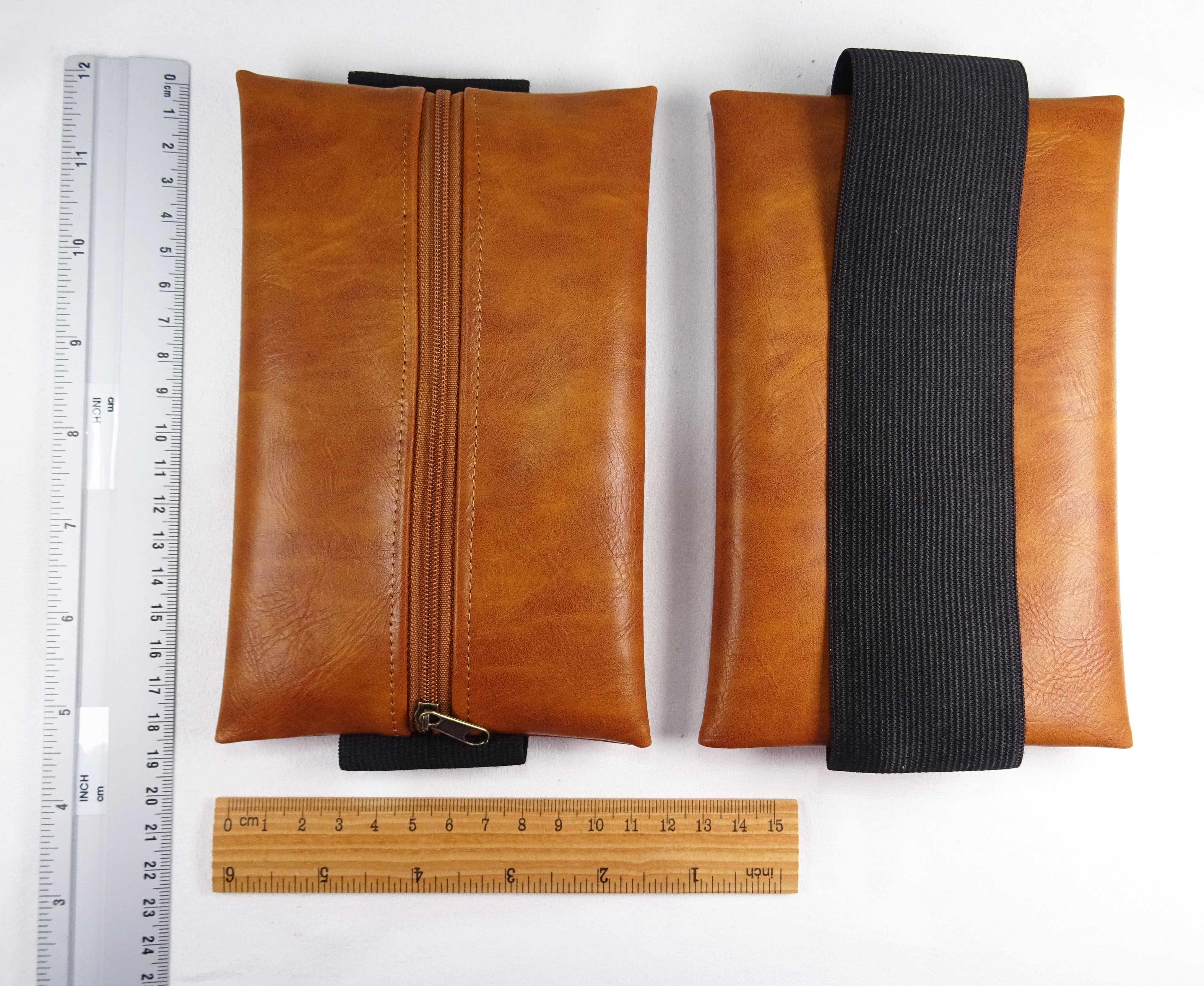 Aus Kunstleder cognac - braun, Antik - vintage Look, used look. Der Reißverschluß ist farblich abgestimmt in cognac-braun, der Schieber ist antik-bronzefarben.